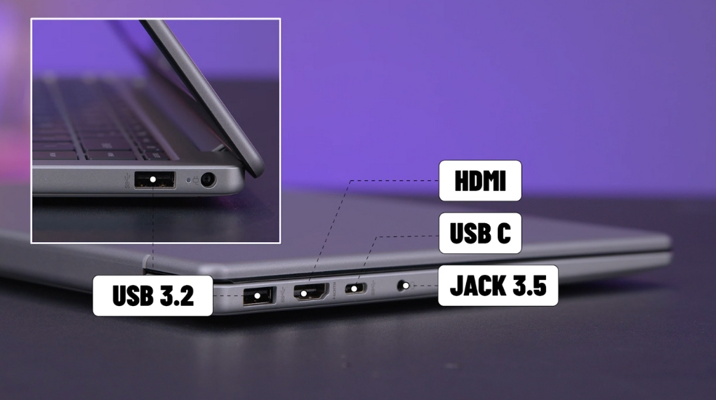 Cổng kết nối lại là một điểm cộng lớn đối với con máy này vì nó đã khá đầy đủ từ cổng USB 3.2 đến Jack cắm tai nghe hay HDMI đến cả USB Type C chính vì thế mà chiếc laptop này có thể đáp ứng nhiều nhu cầu kết nối với nhiều loại thiết bị ngoại vi khác nhau.